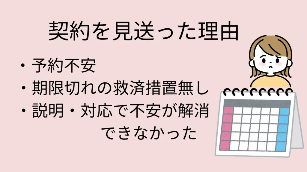 予約不安がカウンセリングの回答でも解消されなかったため、