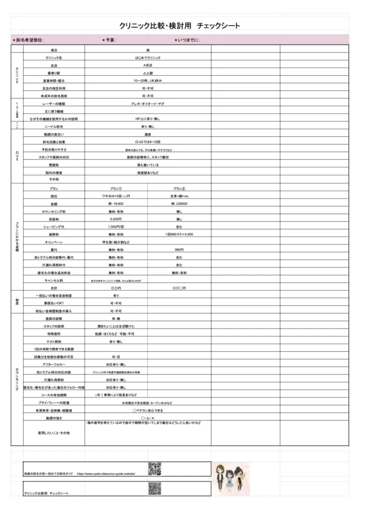 ぜひ、クリニック比較シートをご活用ください。