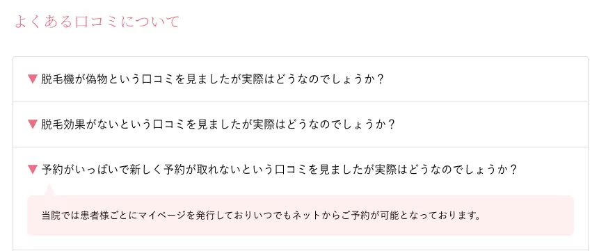 この状況で、顧客側から、脱毛に関する要望を出しても、叶えてもらえる可能性は少ないのではと不安を感じました。